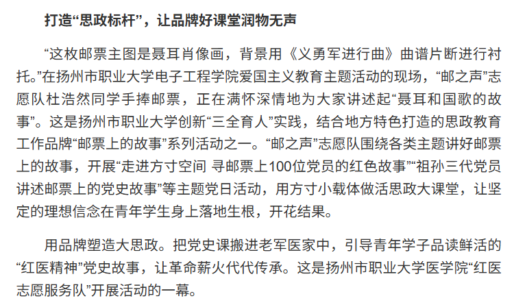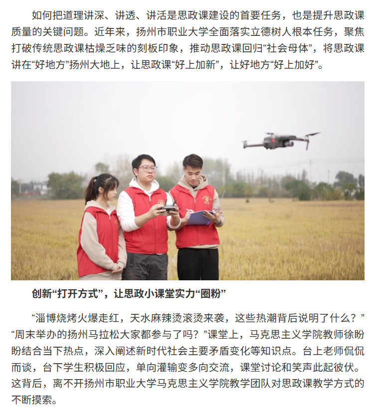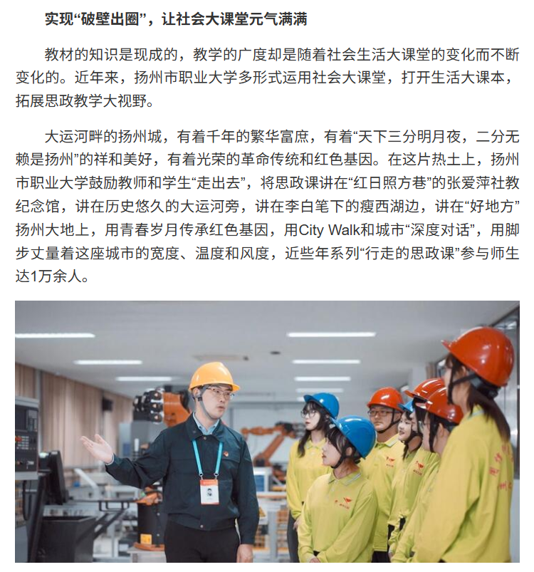 【交汇点】我们的“大思政”|扬州市职业大学:让思政课“好上加新” 让好地方“好上加好”