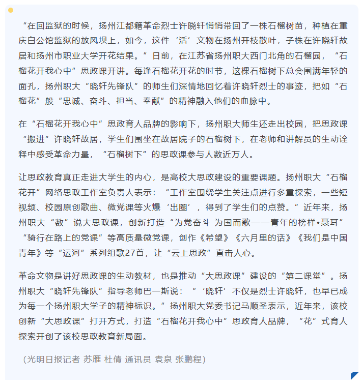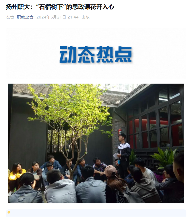 【职教之音(微信)】扬州职大:“石榴树下”的思政课花开入心