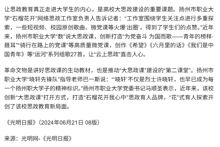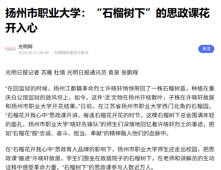 【光明网】扬州市职业大学:“石榴树下”的思政课花开入心